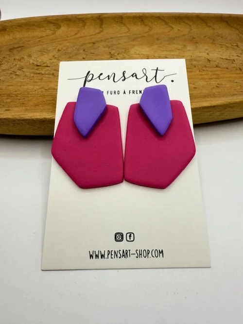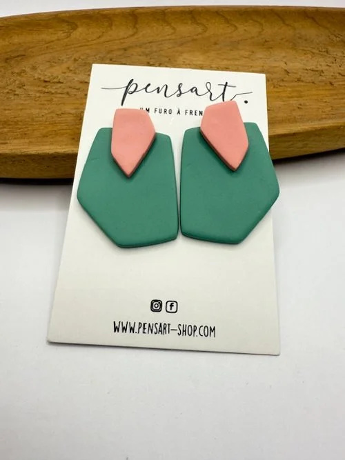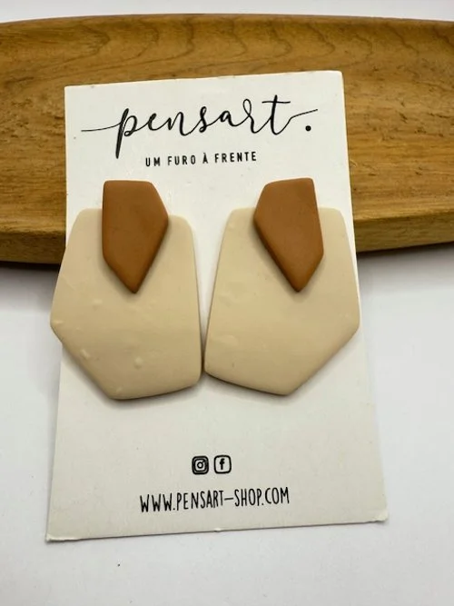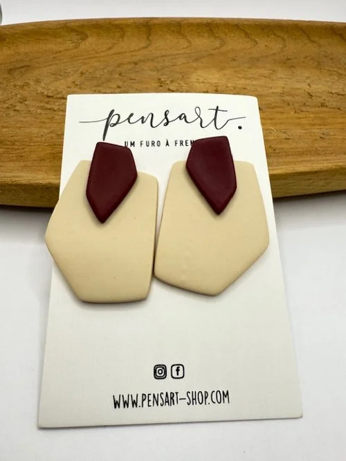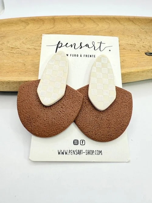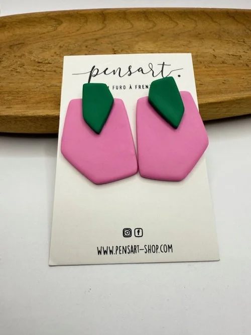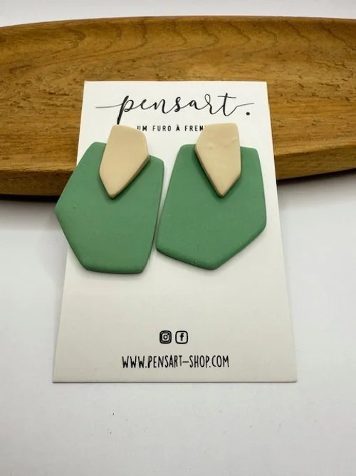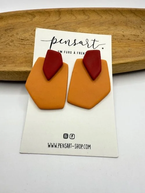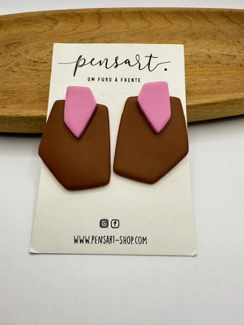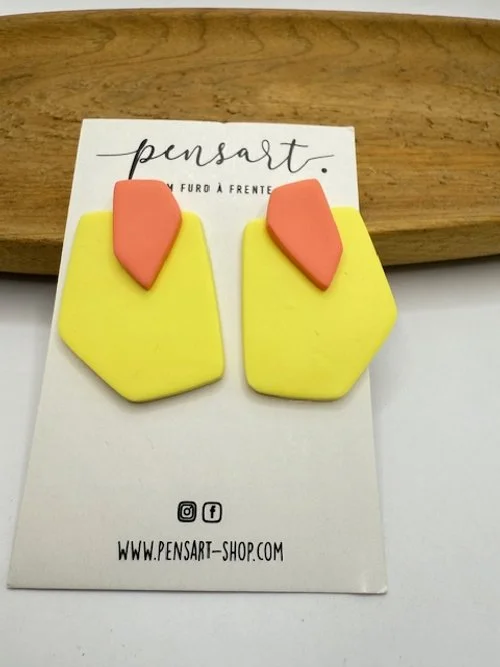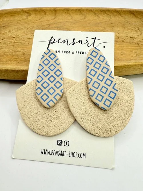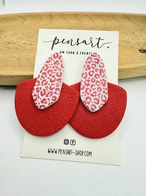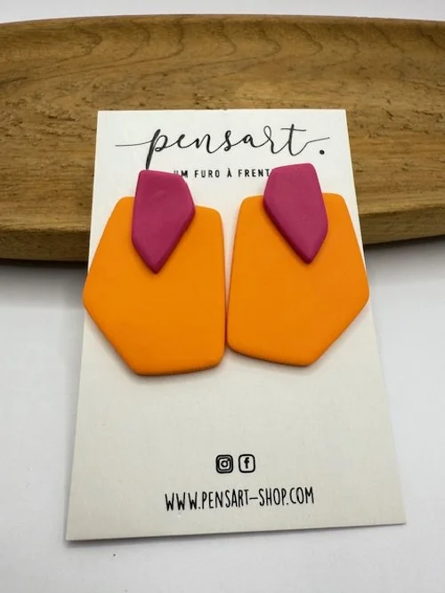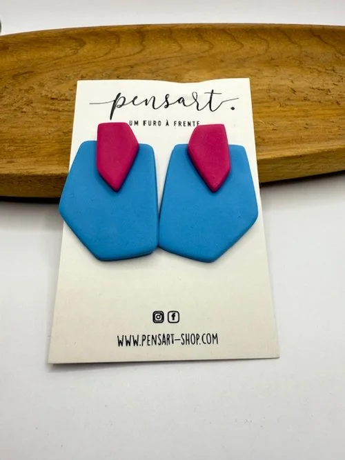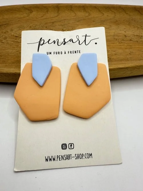 Brincos feitos à mão em argila de polímero, muito resistentes, super leves e confortáveis; Espigões em aço inoxidável.