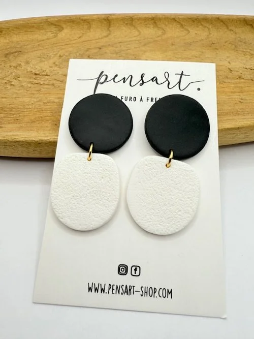 Brinco composto por 3 peças de cor sólida, unidas por argola preta.