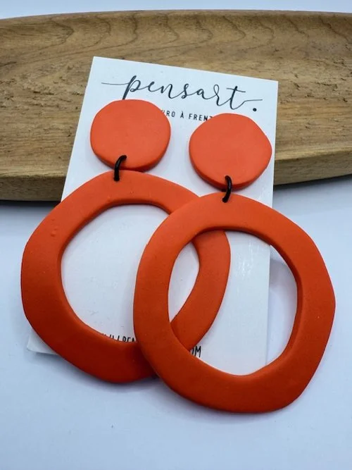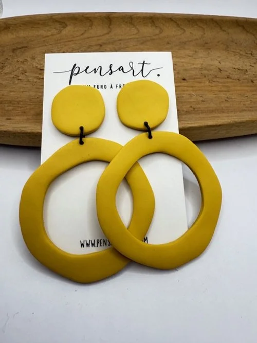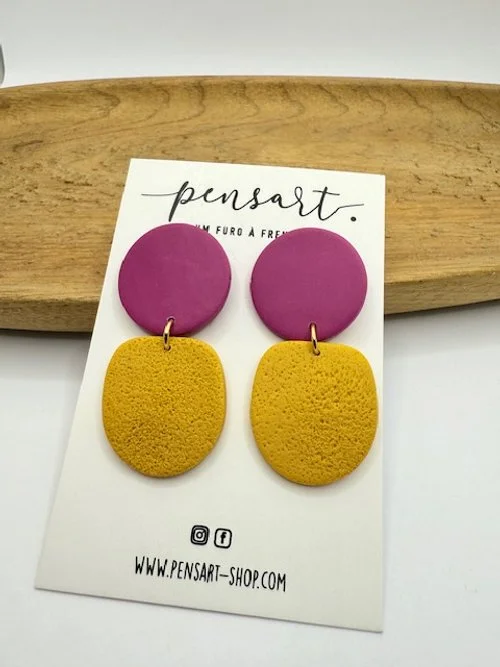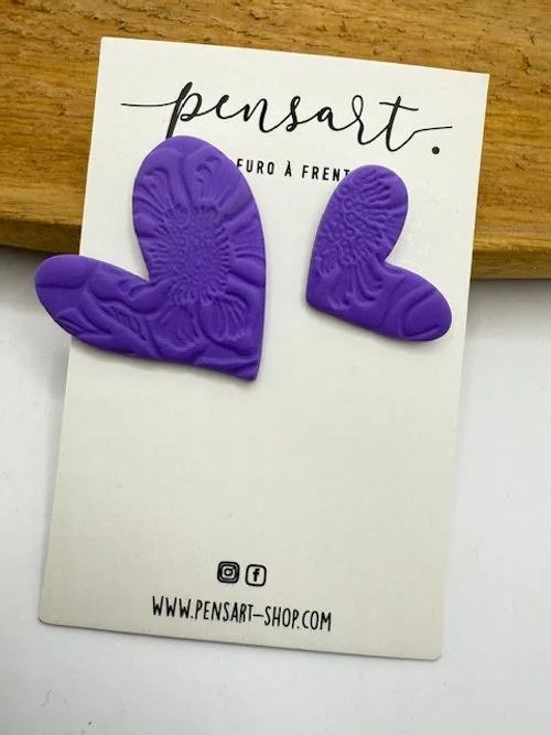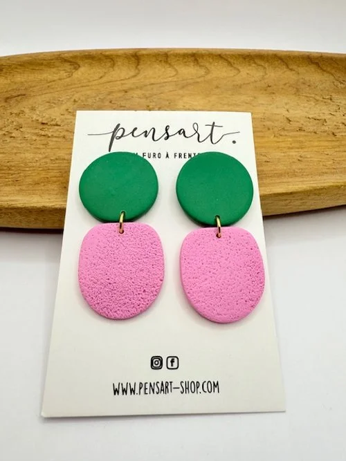 Brincos feitos à mão em argila de polímero, muito resistentes, super leves e confortáveis; Espigões em aço inoxidável.