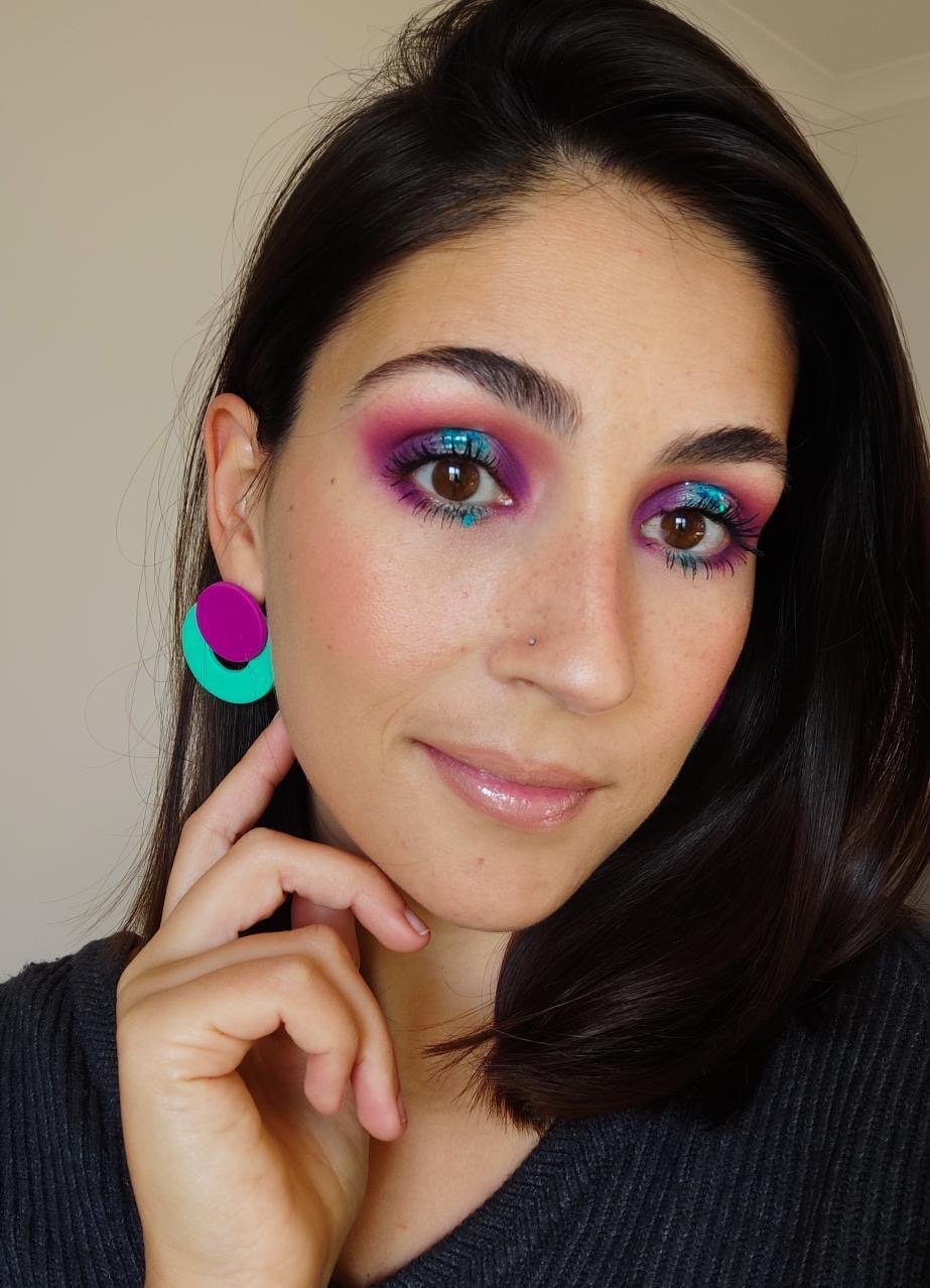 Brinco composto por duas peças de cores diferentes sobrepostas.